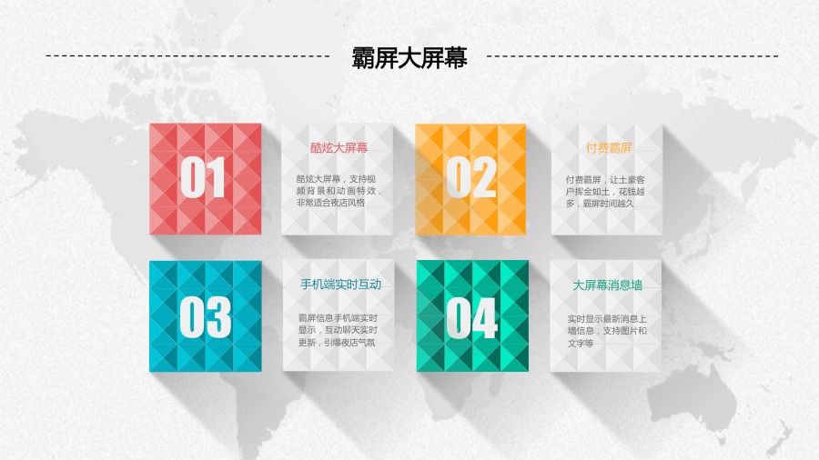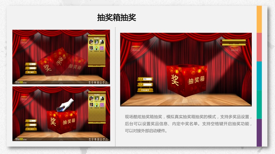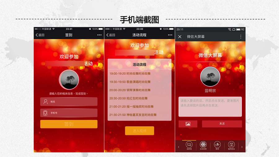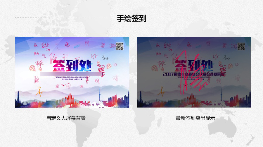 一是形式功能更加多样,更具新鲜感。互联网技术与大屏幕结合后,可以衍生出许多类似小程序的功能,活动流程的各个部分都能通过大屏幕来展示,比如签到、抽奖、企业产品展示,都能在线完成,与传统形式相比,既新鲜又好玩。