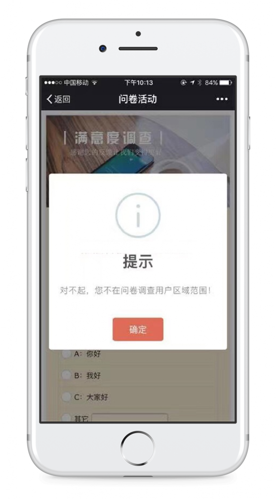 3,具有定位功能,指定区域用户参与,数据更加精准/高效。